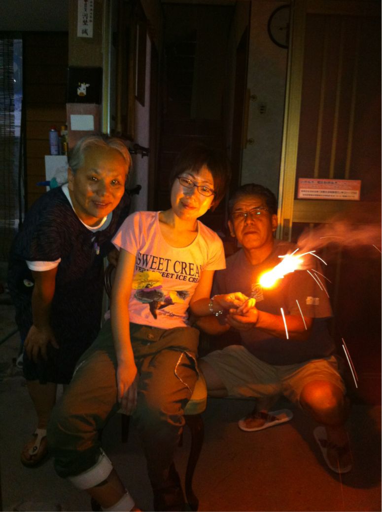 花火。伯父と奥さんと私
